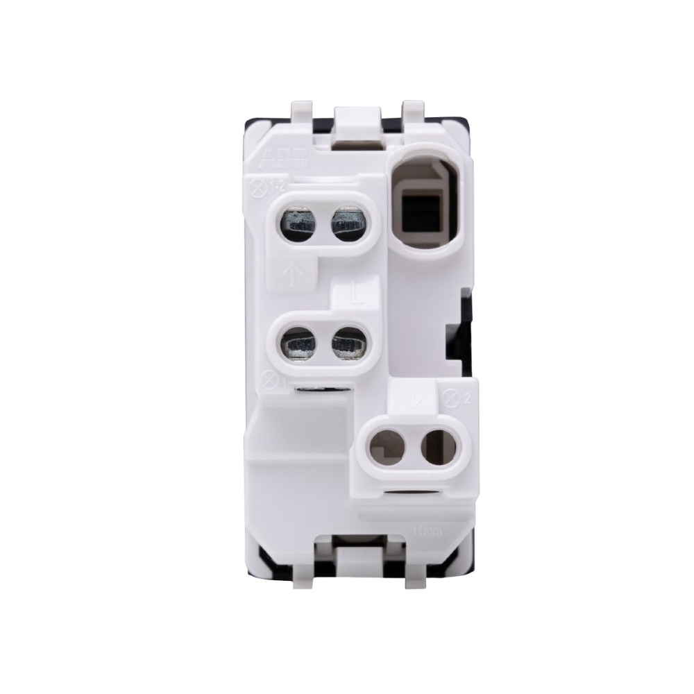 – Design Integrado: Ocupa apenas 1 módulo no suporte da linha Unno Life, permitindo a composição com outros módulos (tomadas, interruptores simples, USBs, módulos de rede).