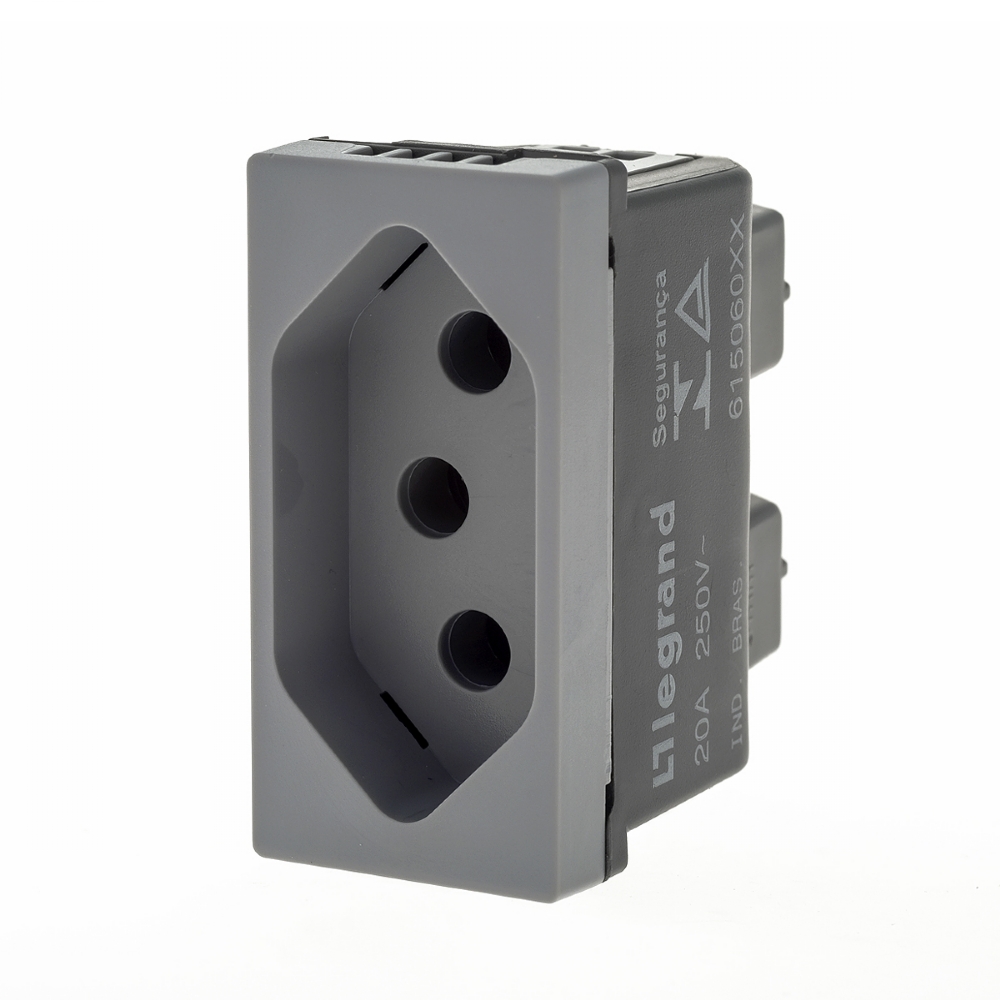 Módulo Tomada 2P+T 1 Posto 20A 250V Cinza Pialplus+