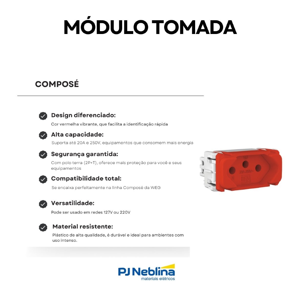 Módulo Tomada 2P+T 20A 250V Vermelha Composé Sem Placa Weg