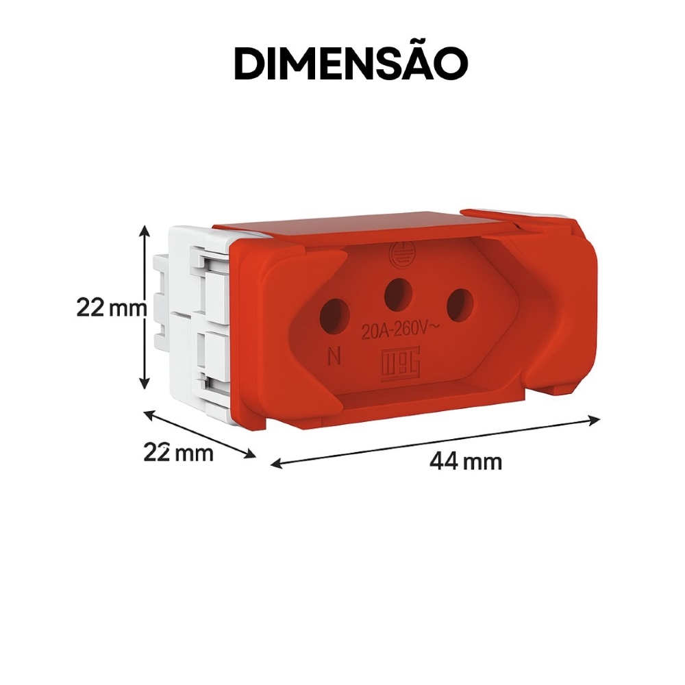 • Design diferenciado: cor vermelha vibrante, que facilita a identificação rápida em instalações onde há necessidade de circuitos especiais ou mais potentes.