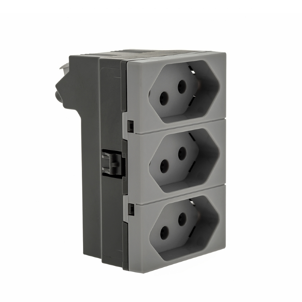 Módulo Tomada 2P+T Triplex 3 Postos 10A 250V Cinza Pialplus+
