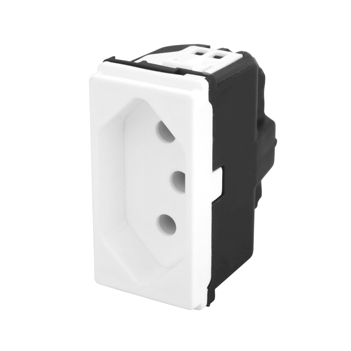 O Módulo tomada 2P+T oferece um design moderno e elegante que combina com diversos tipos de decorações e ambientes residenciais e comerciais, como escritórios, salas, quartos, cozinhas entre outros.