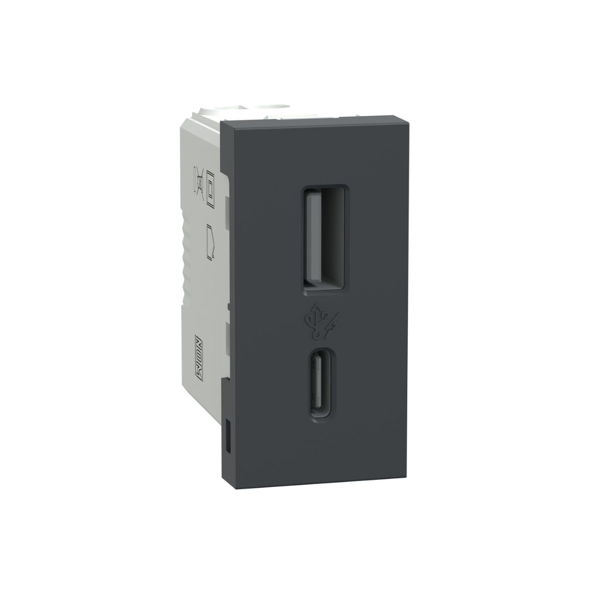 Módulo Tomada Carregador com 2 Entradas USB (Tipo A + Tipo C), 1 Módulo, 2,4 A, Bivolt, Grafite, Linha Orion – Schneider Electric - Código Fabricante: S70547294