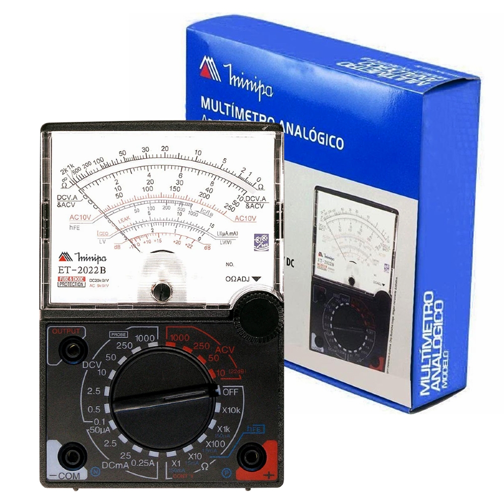 Tendo o Multímetro Analógico 20K Ohms/V 148X100X35mm 62dB, voce alcança o maior nível de satisfação e resolução que só a Minipa oferece.