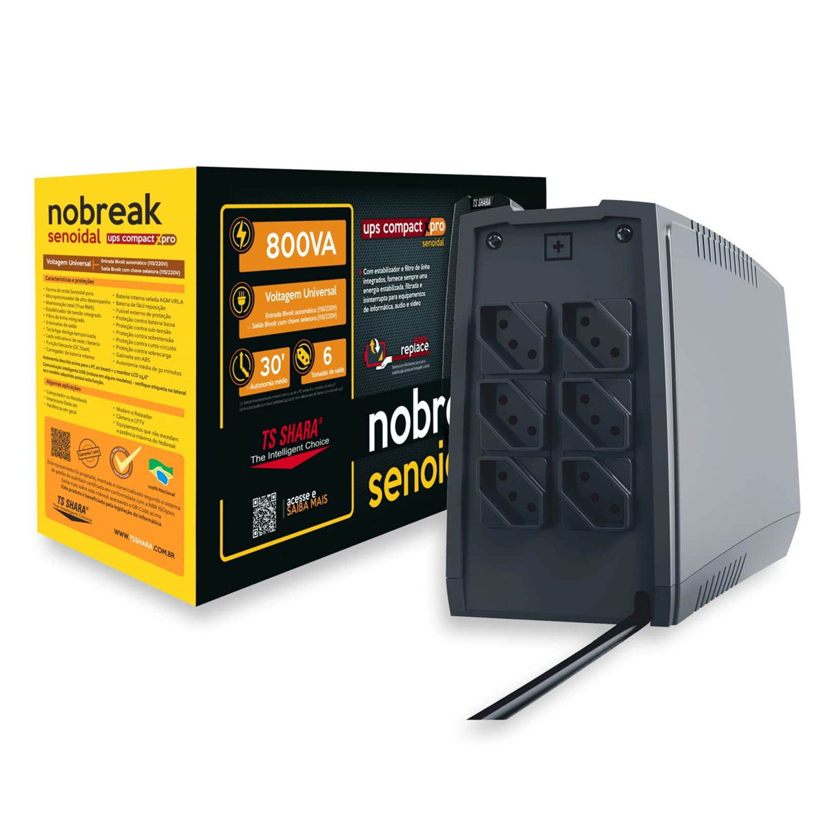 A Ts Shara é uma empresa brasileira que possui mais de 30 anos de existência e de atuação sólida no mercado, criando e desenvolvendo equipamentos e soluções para os ramos de Segurança Eletrônica, Saúde, Automação, e Automação Industrial. Com sua linha de itens fabricada com o mais alto nível de qualidade, tecnologia, durabilidade e confiança, a Ts Shara oferece o mais novo Nobreak Ups Compact Xpro/800VA Senoidal, garantindo a obtenção dos melhores resultados.
