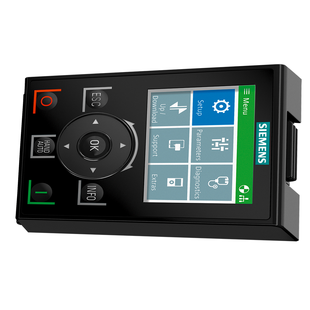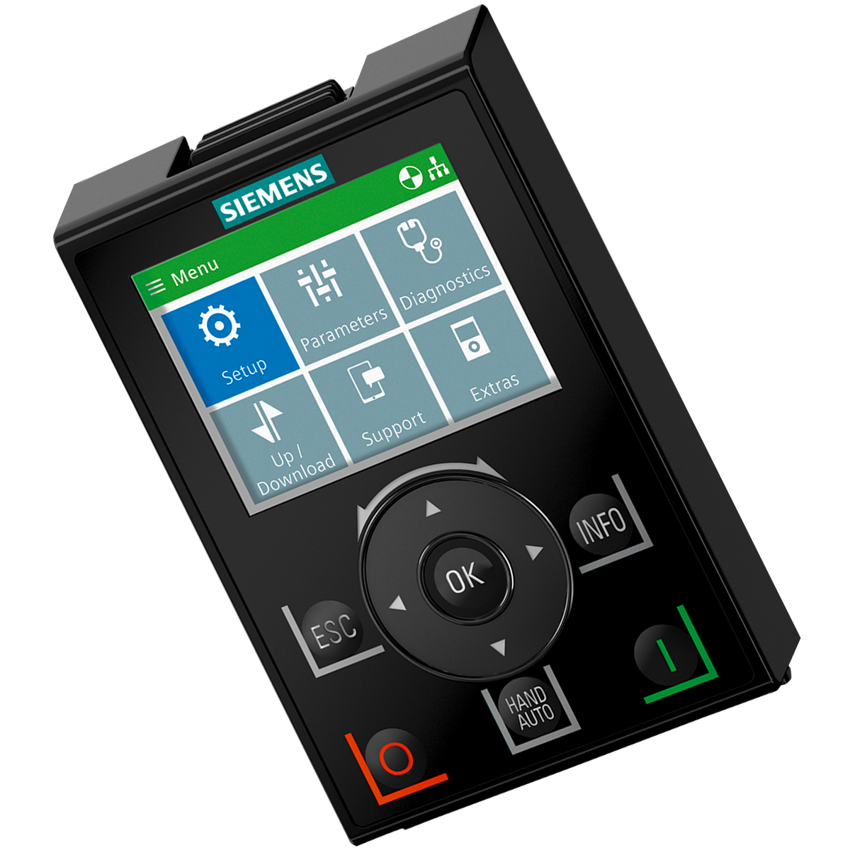 O Intelligent Operator Panel IOP-2 possibilita uma rápida colocação em operação local, diagnóstico de falhas e operação intuitiva da série de conversores SINAMICS G e facilita a adaptação de configurações em operação.