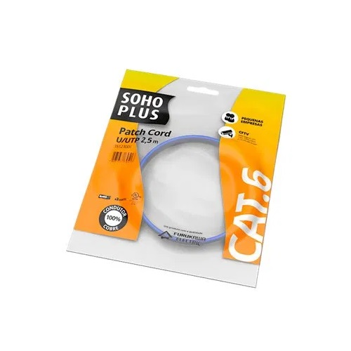 Patch Cord U/UTP CAT6 2,5M Azul Sohoplus Furukawa