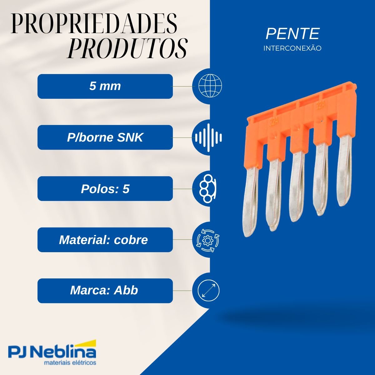 Pente Interconexão 5 Polos P/Borne Snk Passo 5 - Abb - Código Fabricante: 1SNK905305R0000