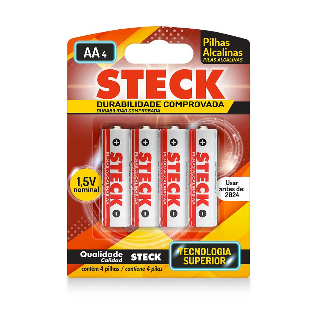 Pilha Alcalina Pequena 1,5V AA Cartela Com 4 Peças Steck