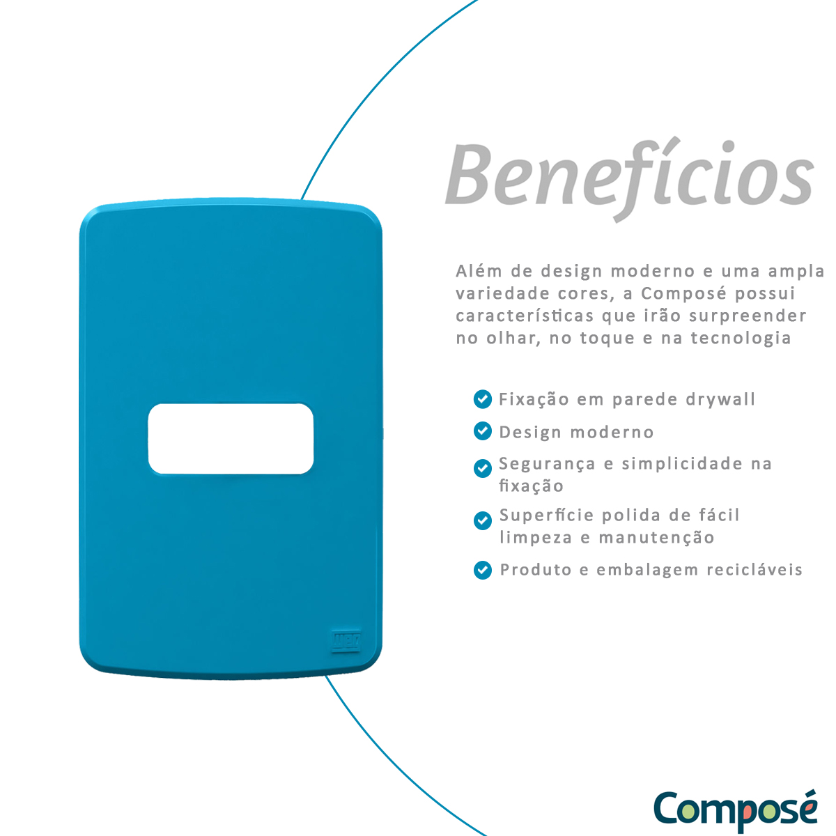 Além de design moderno e uma ampla variedade de cores, a linha de Tomadas & Interruptores Composé possui características que irão surpreender no olhar, no toque e na tecnologia.