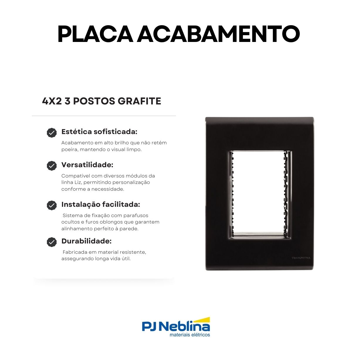 Placa Acabamento 4X2 3 Postos Grafite Liz - Tramontina