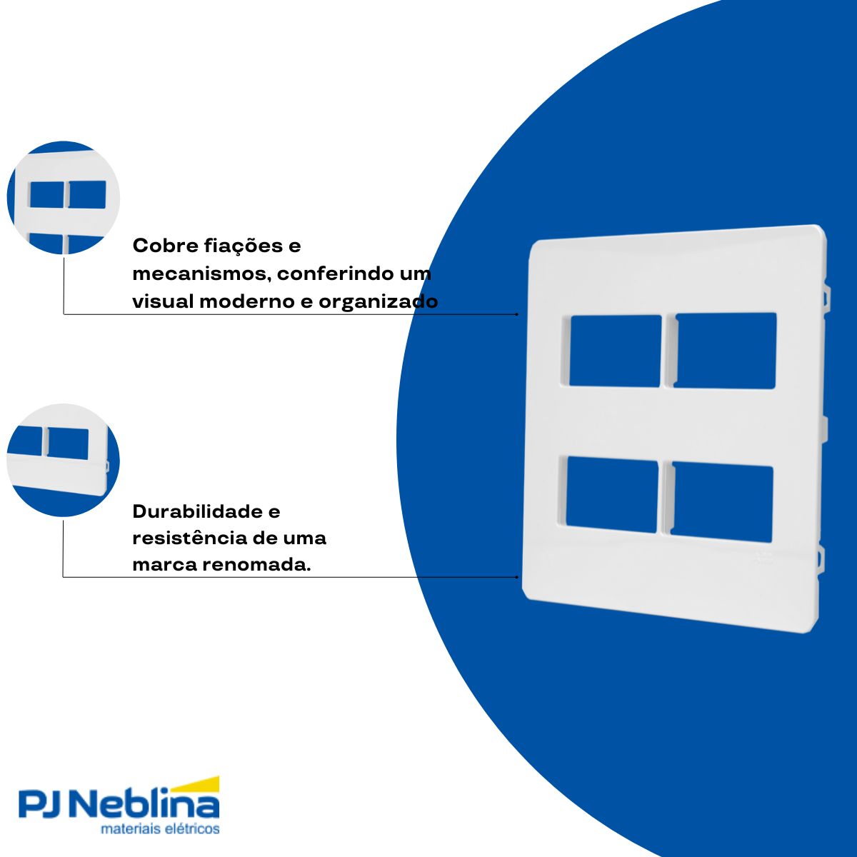 - Padrão 4x4, compatível com caixas de embutir maiores.
