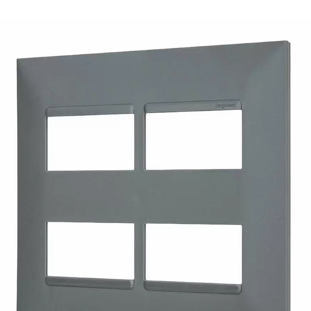 Placa Acabamento 4x4 (4 Módulos) 2+2 Postos Separados Cinza Pialplus+
