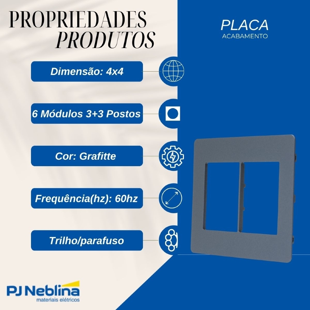 Placa Acabamento 4x4 6 Módulos 3+3 Postos Grafite Unno Life Abb