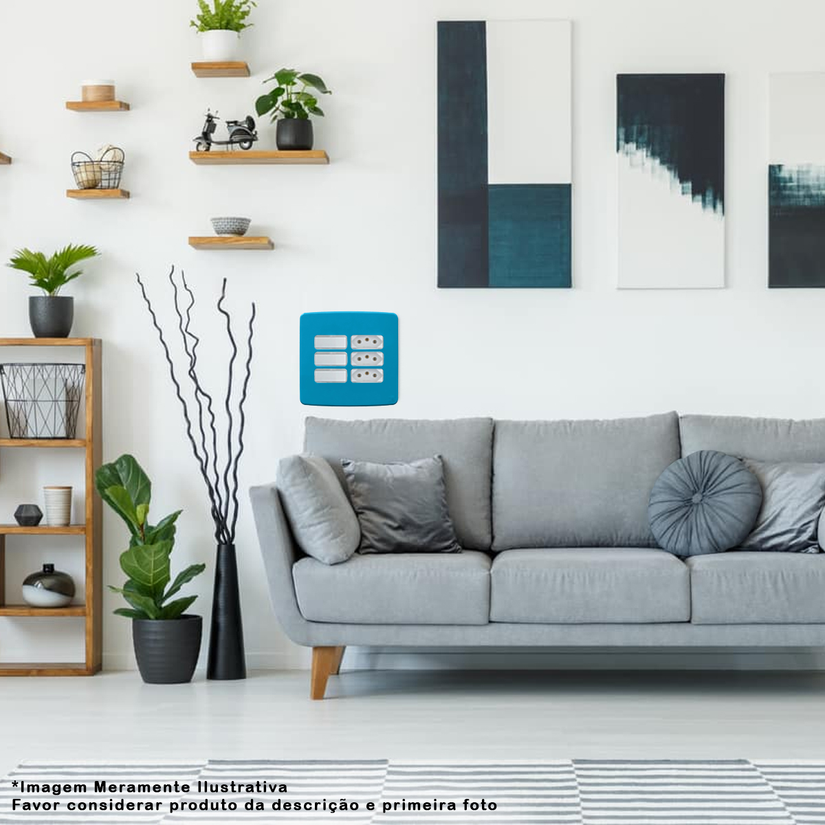 Placa Acabamento 4x4 6 Módulos 3+3 Postos Separados Azul Composé 13208258 Weg