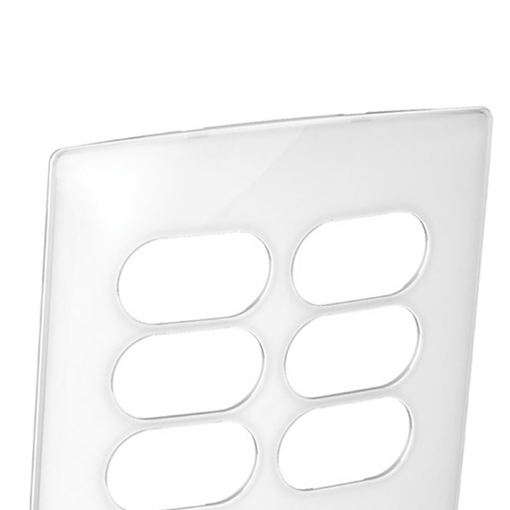 Placa Acabamento 4x4 Branco Gloss 6 Módulos 3+3 Postos Separados Nereya Pial