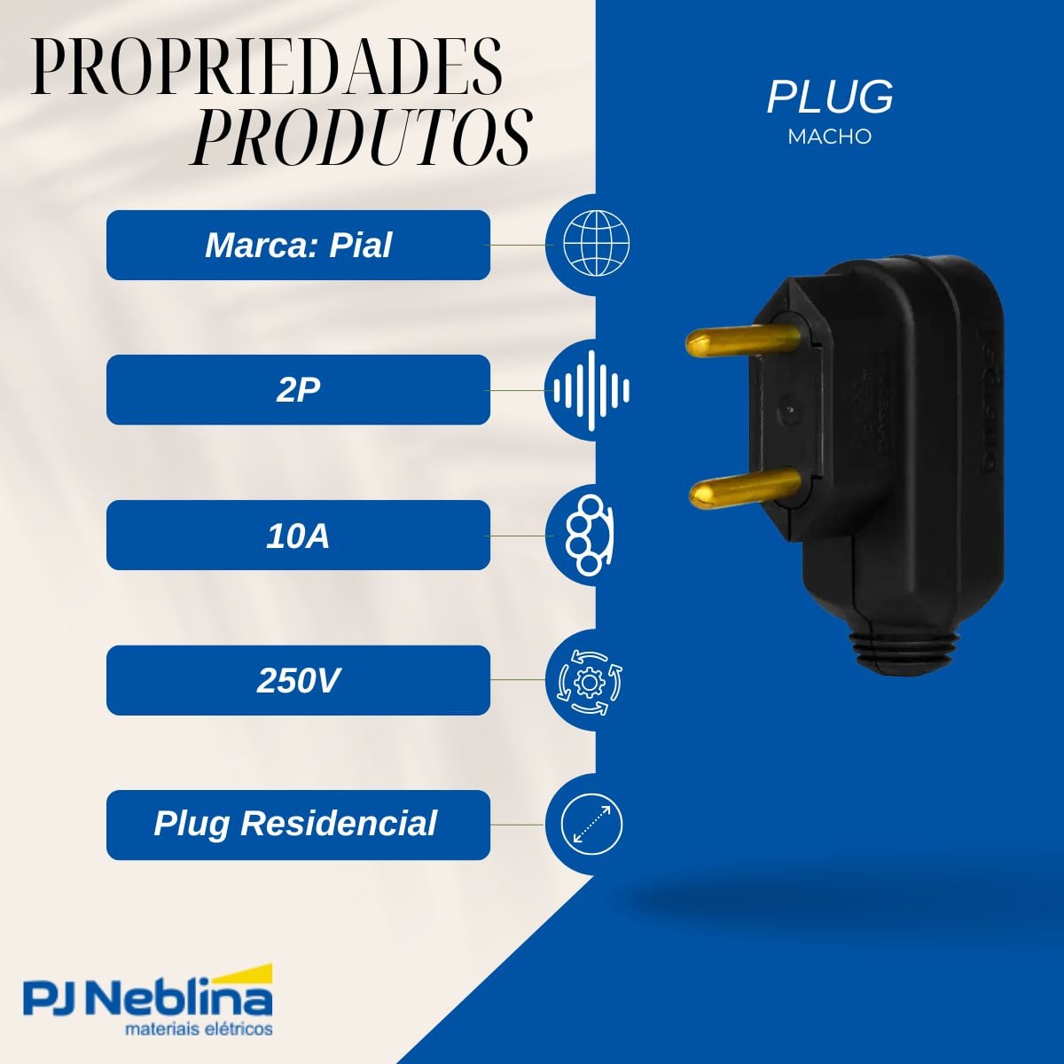 Plug Macho 2p 10a 250v Pt Lateral 90g