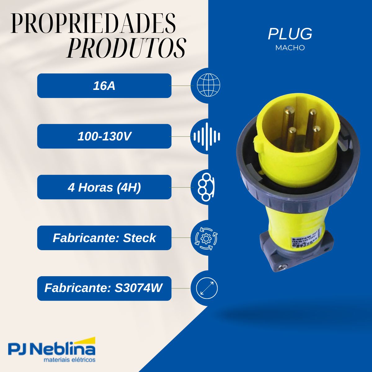 - Posição do Pino Terra (4H): A posição do pino terra às 4 horas é o padrão para essa faixa de tensão, garantindo que o plugue só se encaixe em tomadas compatíveis.