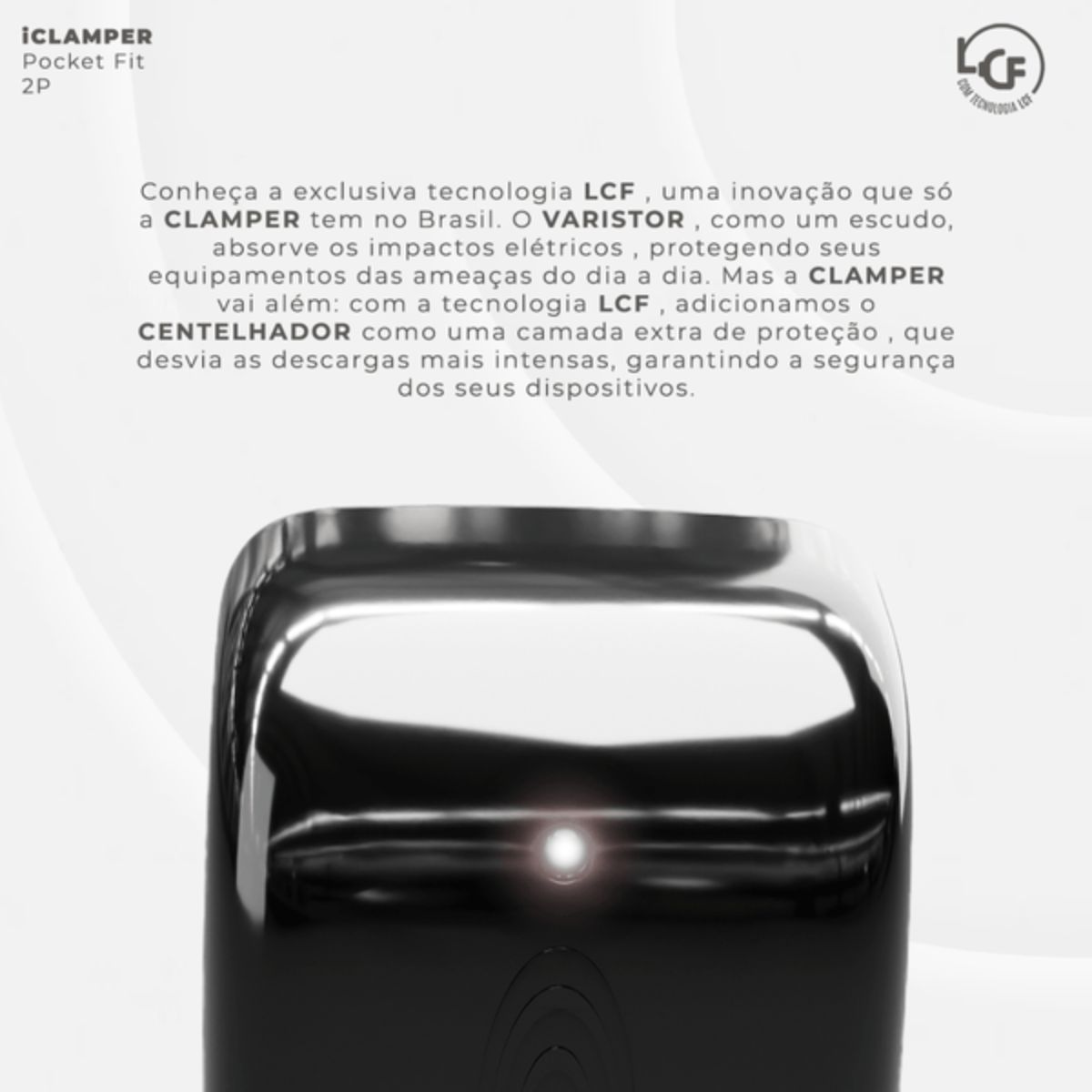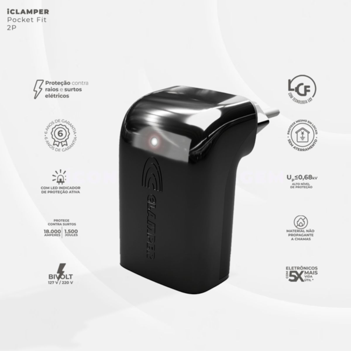 Protetor Surto Dps Tomada Iclamper Pocket Fit 2 Polos Bivolt 10A 6Ka Preto Classe III - Clamper