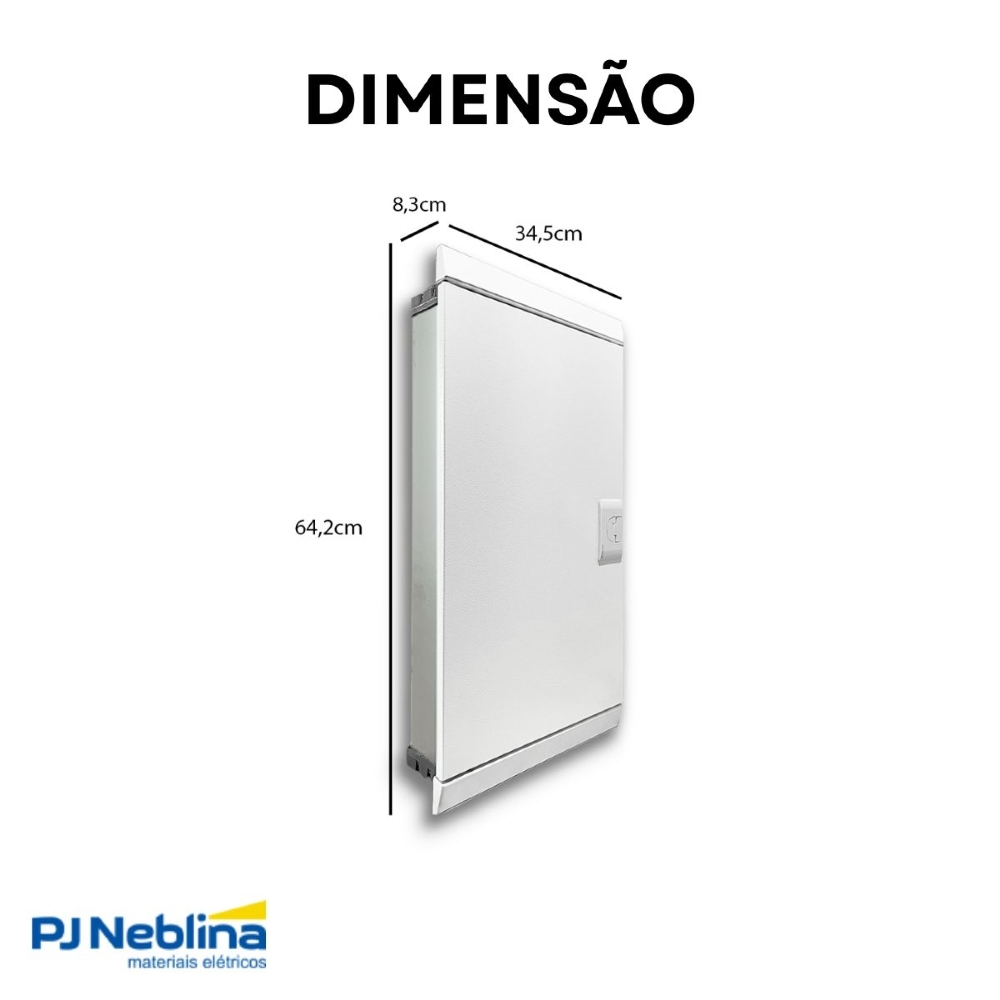 - Grau de Proteção (Provável IP40 ou IP41): Para quadros de embutir de uso interno, o grau de proteção mais comum é IP40 ou IP41, garantindo proteção contra a entrada de objetos sólidos maiores que 1,0 mm (ex: ferramentas, fios grossos, poeira moderada) e, no caso do IP41, proteção contra respingos verticais. Não é projetado para exposição a jatos d'água ou intempéries.