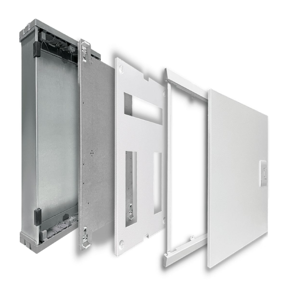 - Quadro de Distribuição de Embutir (QDE): Significa que o quadro é projetado para ser instalado dentro da parede, ficando nivelado com a superfície após a instalação. Apenas a porta e o aro frontal ficam visíveis.