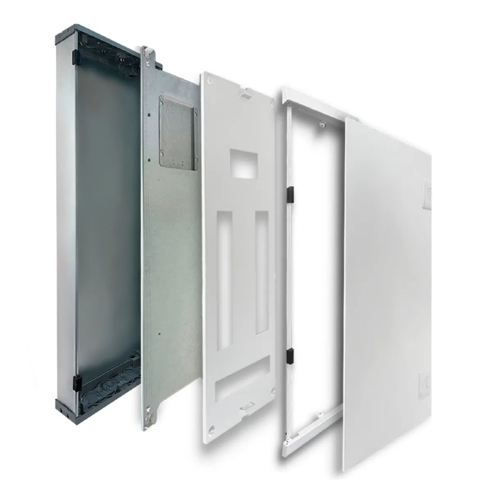 - Tipo: Quadro de Distribuição de Embutir (QDE): Indica que o quadro é projetado para ser instalado dentro da parede, ficando completamente nivelado com a superfície após a instalação.