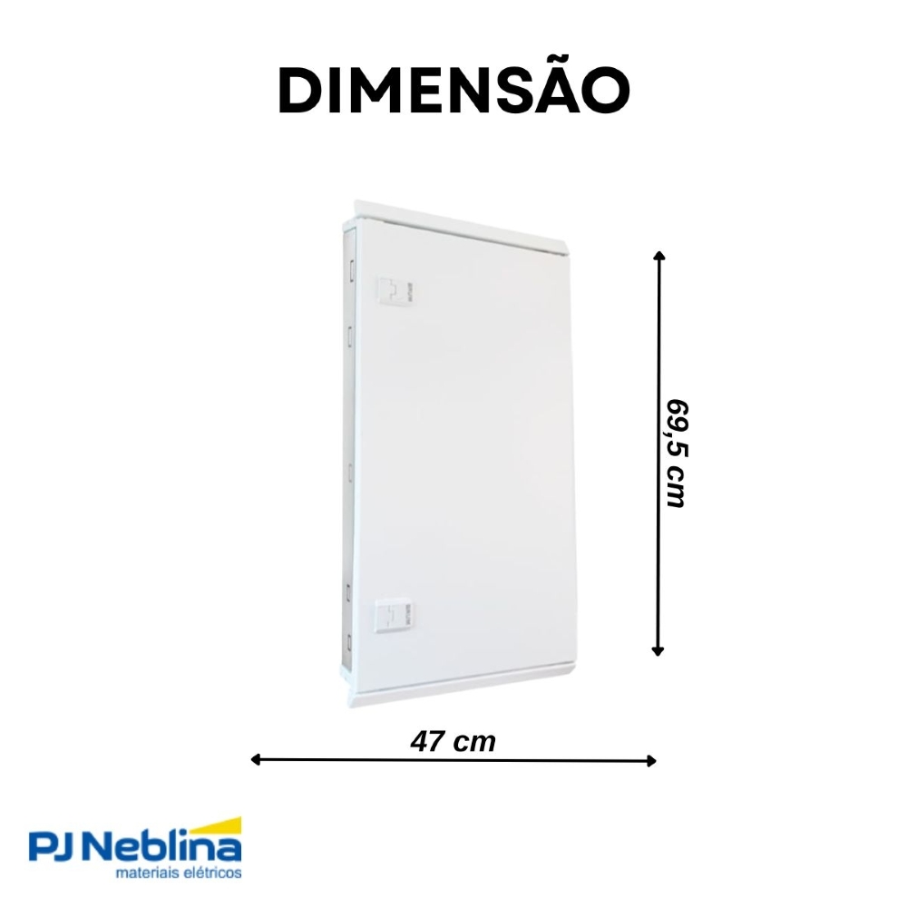 - Barramentos (Assumidos Incluídos e Robustos): Para um quadro com 24 disjuntores e capacidade de 150/250A, é fundamental e implícito que ele venha com barramentos de cobre dimensionados para os 250A