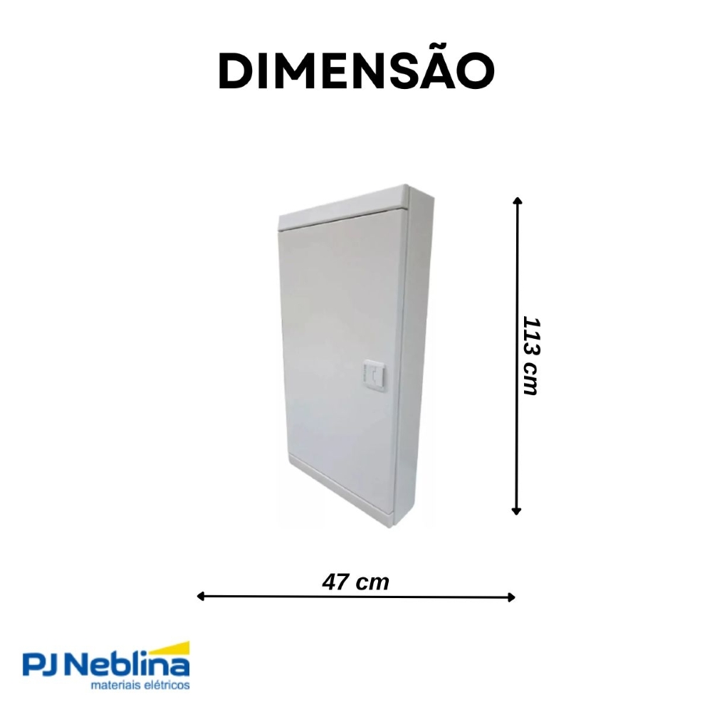 - Orientação: Vertical: Indica que o quadro é projetado para ser instalado com sua maior dimensão na vertical (mais alto do que largo). Esta configuração é comum para otimizar o espaço na parede e facilitar a organização interna dos componentes e da fiação, especialmente quando se trata de muitos circuitos.