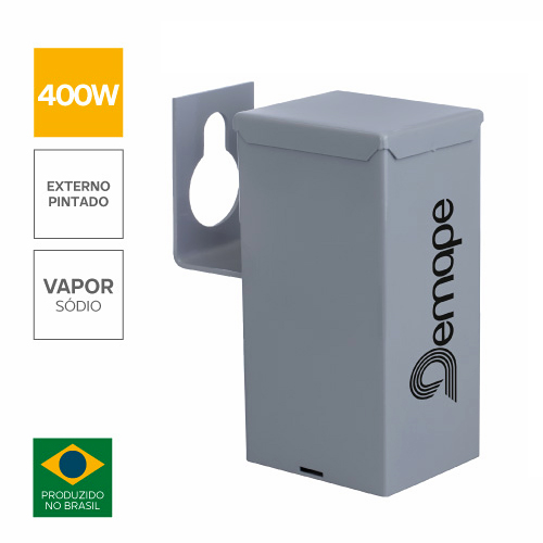 O reator 400W externo pintado ENCE Demape é produzido com alta tecnologia, através de componentes rastreáveis e baixo índice de manutenção. É o reator mais leve e eficiente do mercado, para uso em conjunto com lâmpada de vapor de sódio.