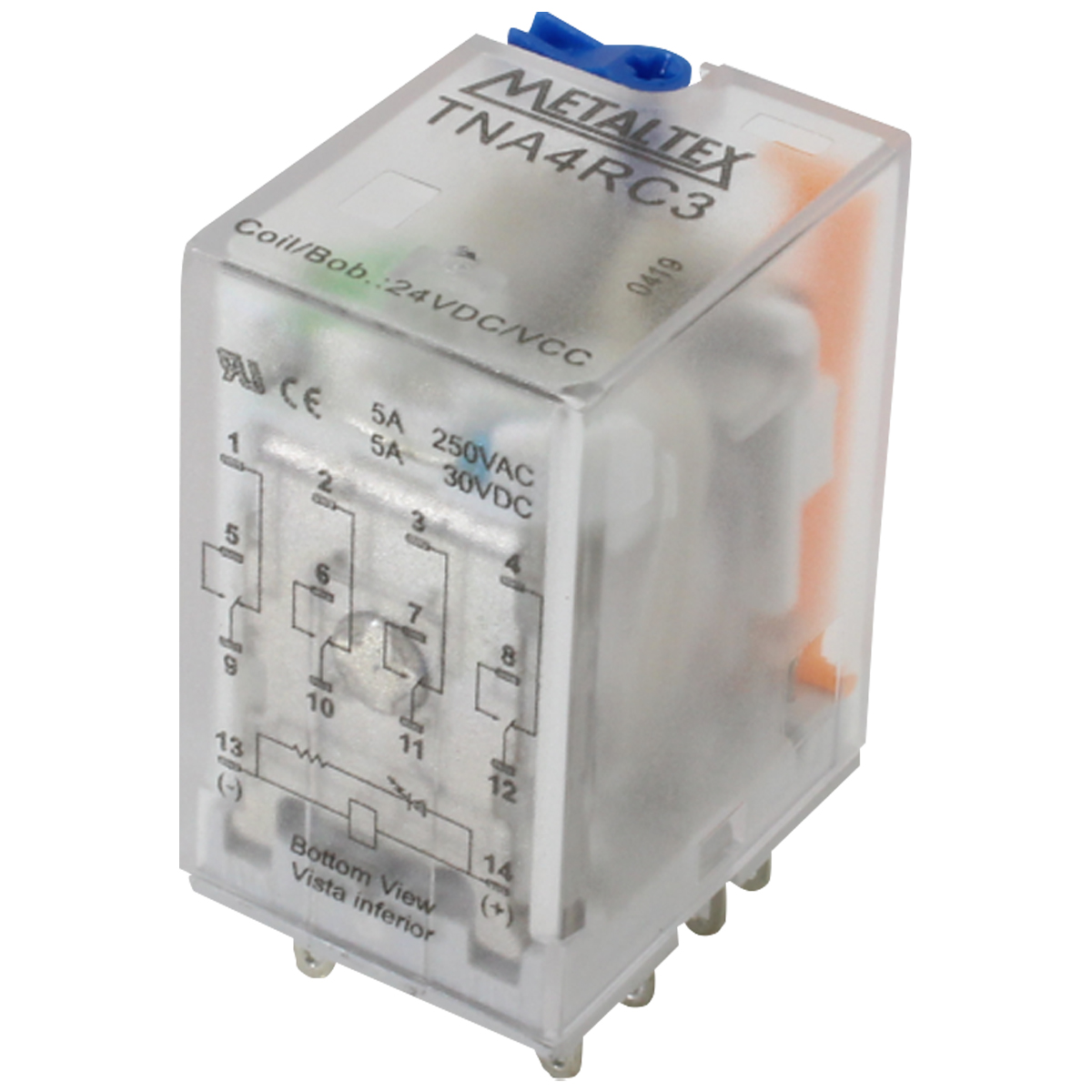 Relé Industrial 14 Pinos 5A 24Vcc 4 Reversíveis Subminiatura Tna4rc3 - Metaltex