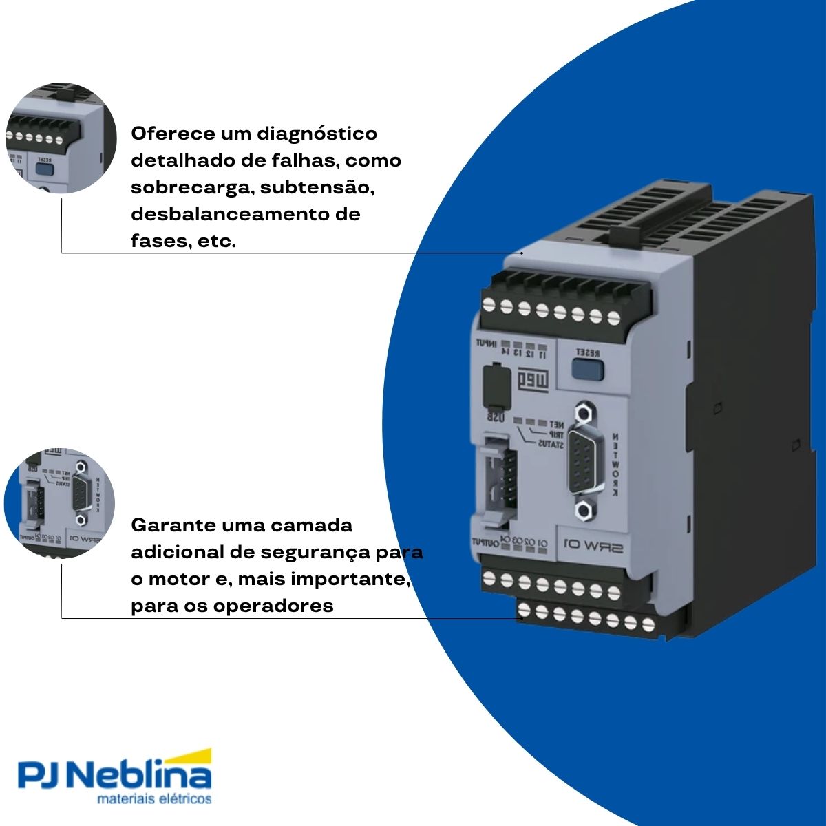 - Inteligência Embarcada: Permite diagnóstico preciso de falhas, registro de eventos, medição de grandezas elétricas e parametrização detalhada.