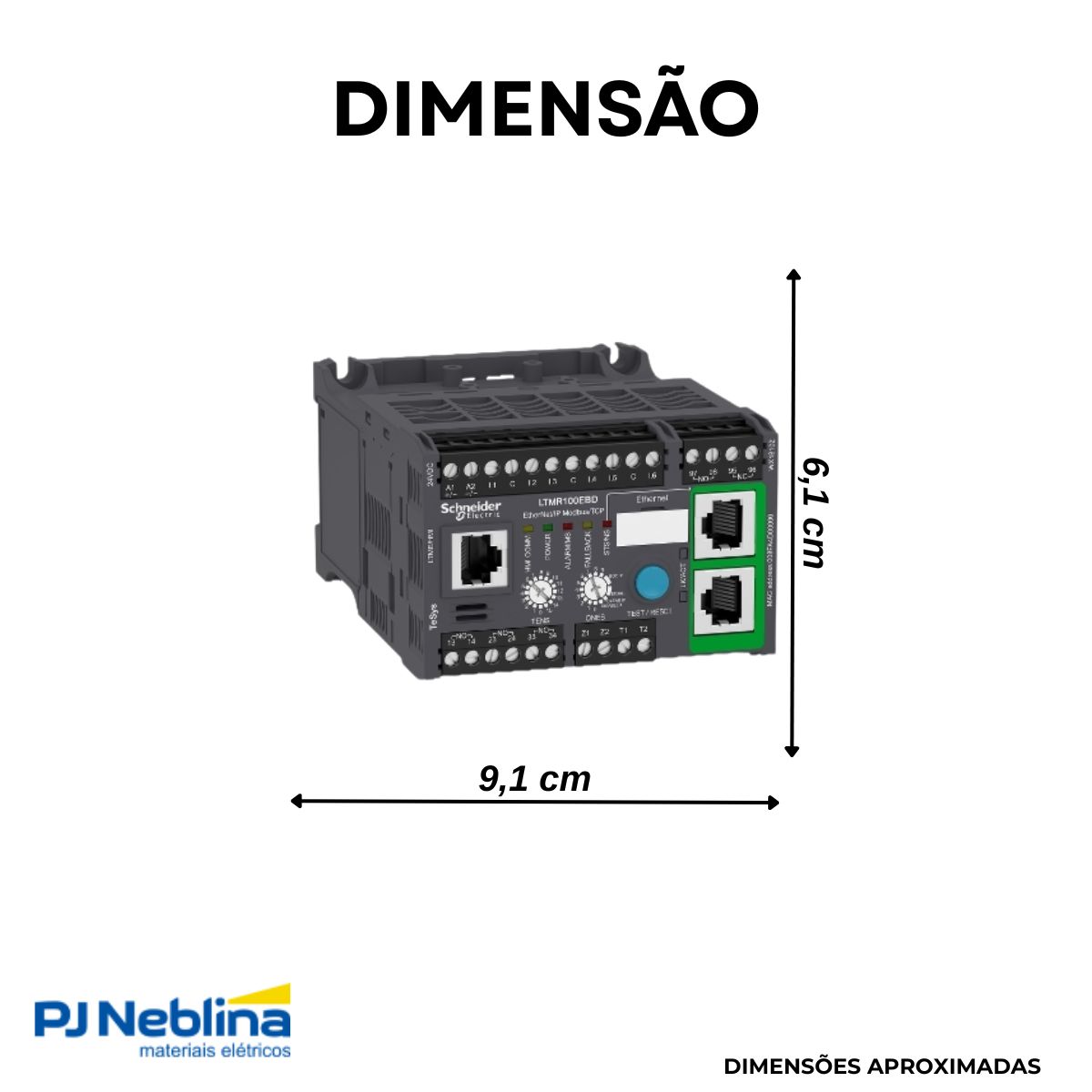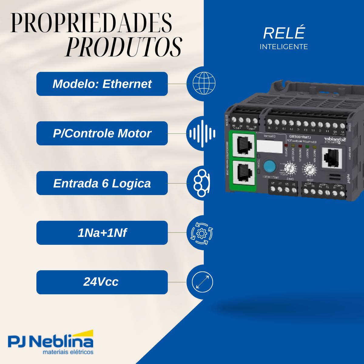 Rele Inteligente Ethernet Controle Motor Entrada 6 Logica 1Na+1Nf Sinal Falha/3Na 24Vcc 5-100A - Schneider - Código Fabricante: LTMR100EBD