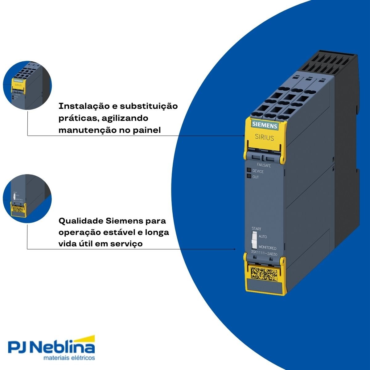 - Permite integração em painéis de comando com circuitos de segurança dedicados.