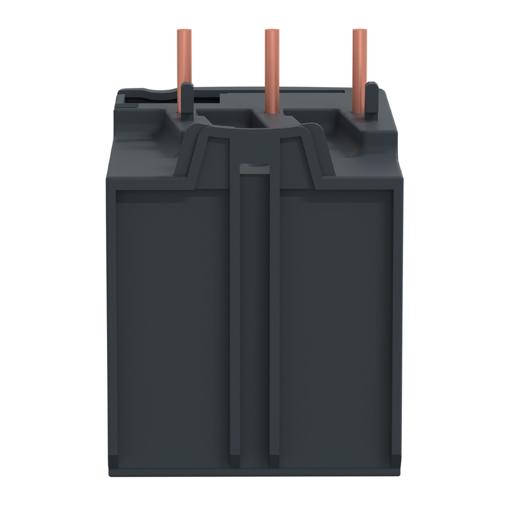 O relé é um dispositivo diferencial com falha de fase (perda). Ele fornece um dial de ajuste térmico, um seletor de reset manual-automático, um botão de teste para simulação de disparo, botões de reset e parada, um indicador de alerta e dois contatos auxiliares (1NA+1NF) para sinalização de falha As configurações são protegidas por uma tampa transparente que pode ser trancada por selagem. Sua conexão é por meio de terminais de parafuso, conecta-se diretamente aos terminais inferiores dos contatores 3 polos LC1D09-D38, ou separado do contator, com uso de um bloco de terminais LAD7B106 (a ser encomendado separadamente). Pode ser montado em riel DIN ou fixação por parafuso. Este produto tem certificação multipadrão (IEC, UL, CSA, CCC, EAC, ATEX, Marine).
