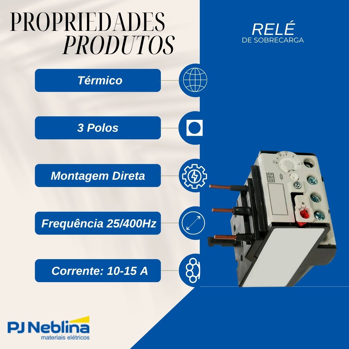 - Tipo: Térmico, o que significa que sua atuação é baseada no efeito joule (aquecimento de um bimetal) provocado pela corrente elétrica que o atravessa.