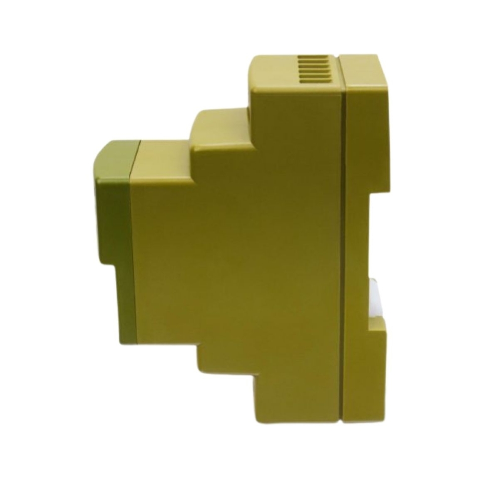 Formato compacto com montagem em trilho DIN (90 × 35,8 × 73 mm): Ideal para painéis com espaço limitado.