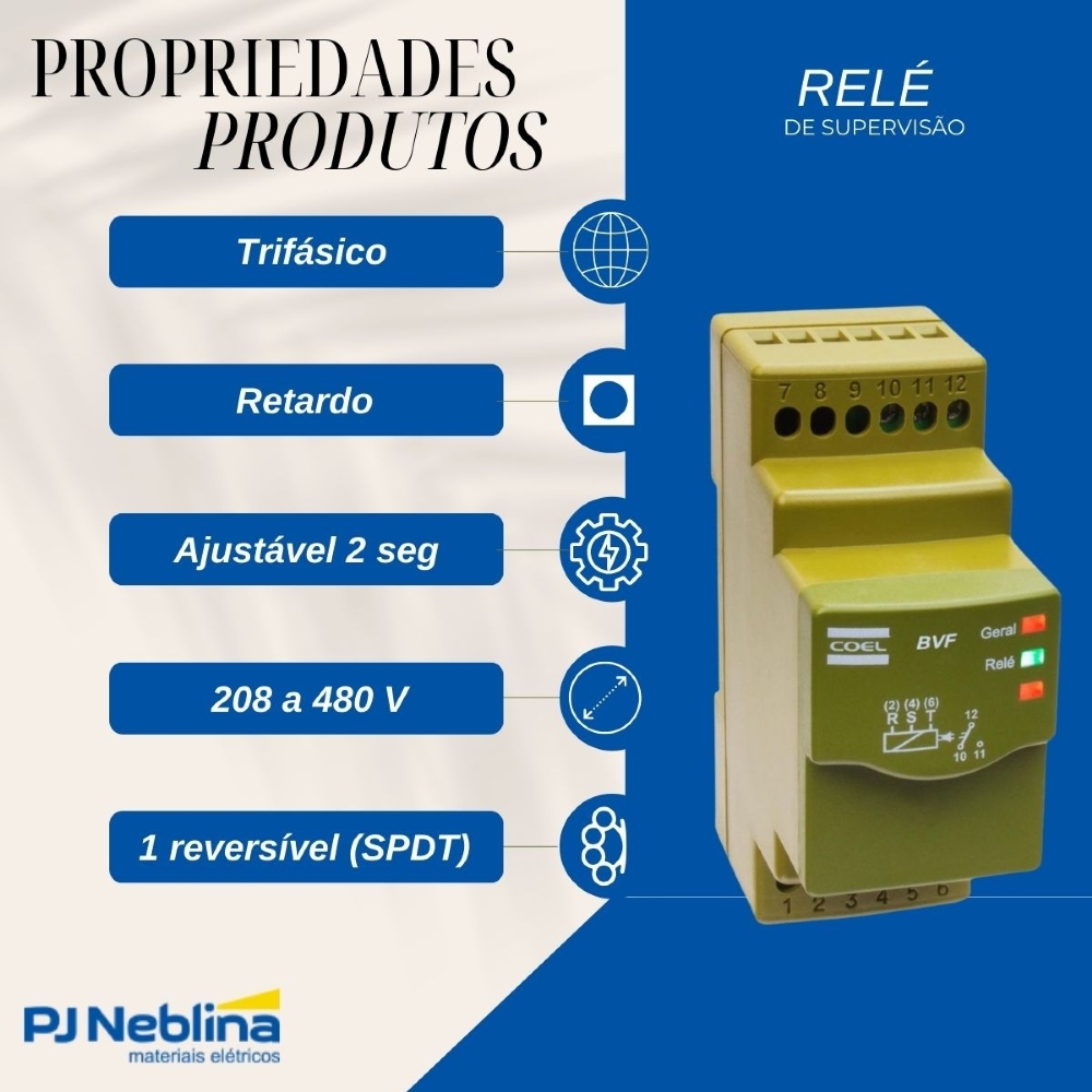 Relé de Supervisão Trifásico - Falta de Fase com Retardo de até 2 segundos (208 a 480 V) - Coel