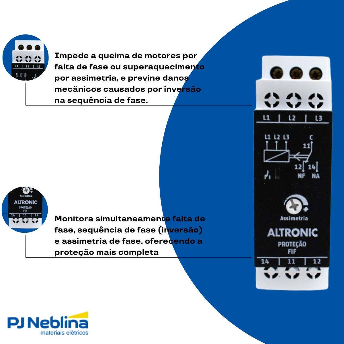 - Ampla faixa de tensão de operação: 220V a 440V (sem necessidade de neutro).