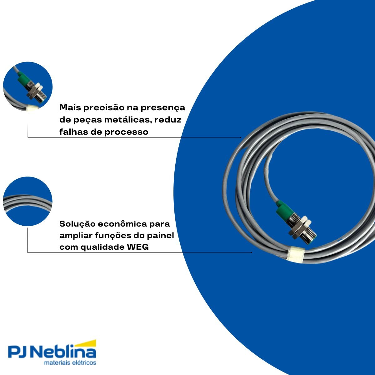 Sensor Indutivo Cilíndrico Roscado Sn=2Mm M12X1,00Mm Metálico 3 Fios 10-30Vcc Cabo 2M Pnp 1Na 1 Led - Weg - Código Fabricante: SL2-12G1LPA-SC