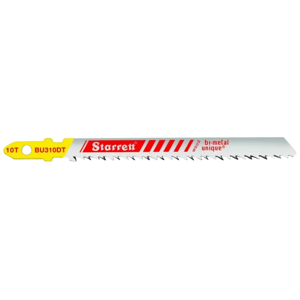 As lâminas de serra Tico-Tico com encaixe unificado Starrett são fabricadas com o novo AÇO BI-METAL UNIQUE™ e portanto incorporam a sua avançada performance de corte, ou seja, a nova “Starrett Bi-Metal Unique Saw Technology”.