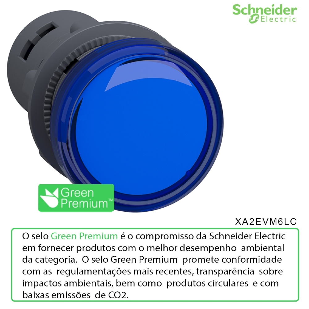 Sinaleiro Monobloco Iluminado Redondo 22mm 220V Plástico Led Azul Ip65 50/60Hz XA2EVM6LC Easy Harmony Xa2 Schneider Electric
