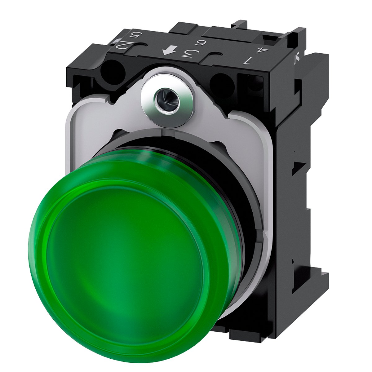 Botão Sinalizador Led Plástico 22mm 230Vac Verde Com Suporte 3SU11066AA401AA0 Siemens