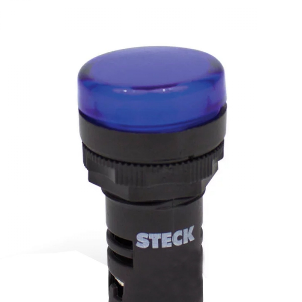 Sinaleiro Monobloco Redondo Plástico 110V Led Ip65 22Mm Max Botton Azul Steck