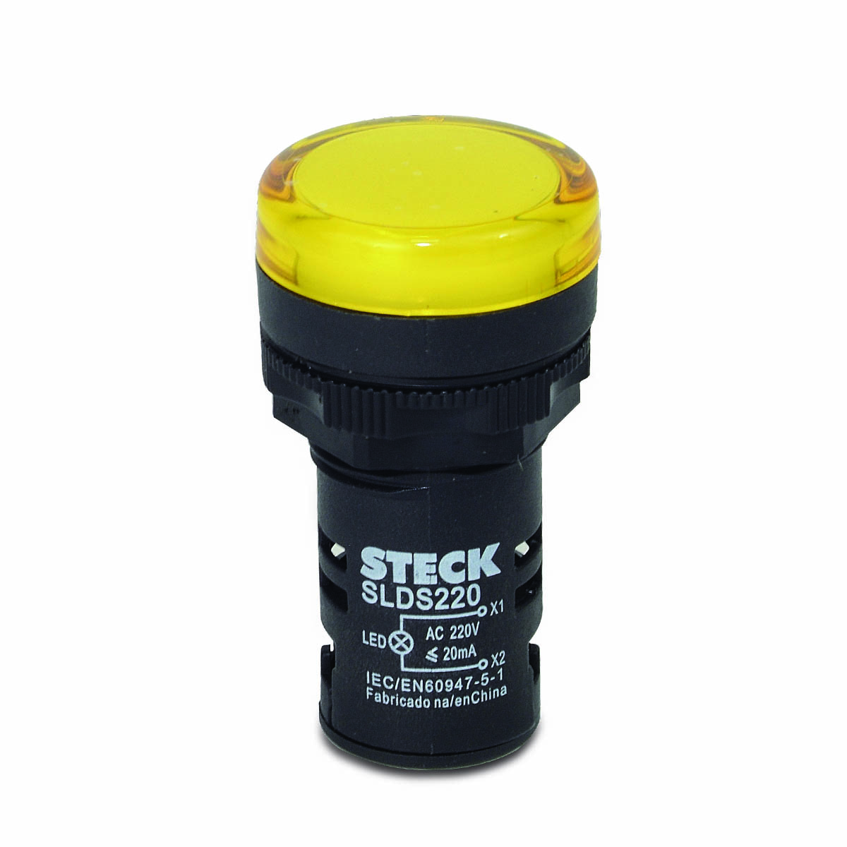 Sinaleiro Monobloco Redondo Plástico Led 220V Amarelo Steck