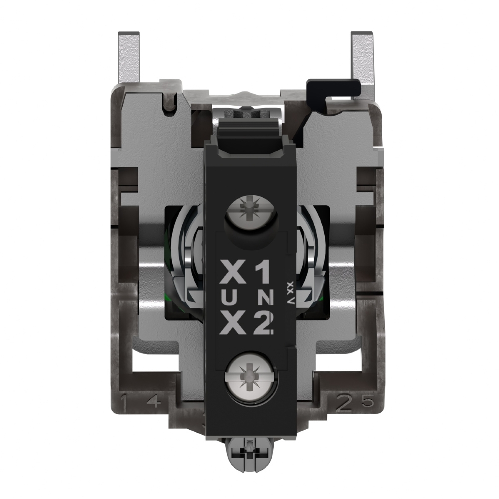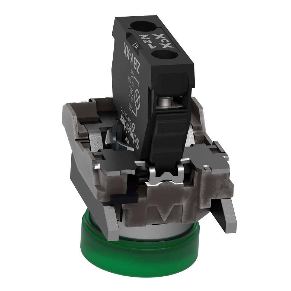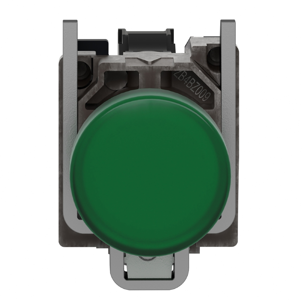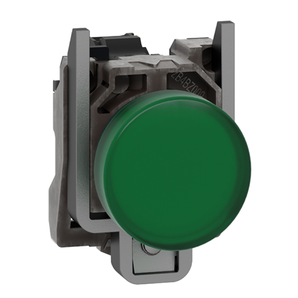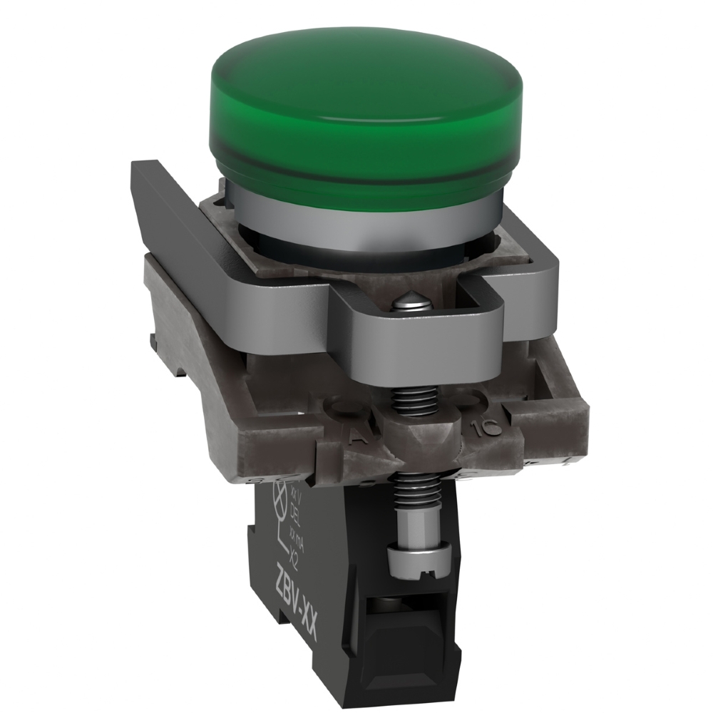 O XB4BVG3 é um sinalizador metálico verde da linha Harmony XB4, sua tensão de funcionamento é de 110...120VCA e utiliza a tecnologia de LED integrado.