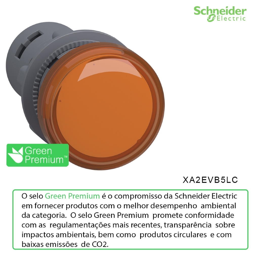 Sinaleiro Monobloco Iluminado Redondo 22mm 24Vca/Cc Plástico Led Âmbar Ip65 XA2EVB5LC Easy Harmony Xa2 Schneider Electric