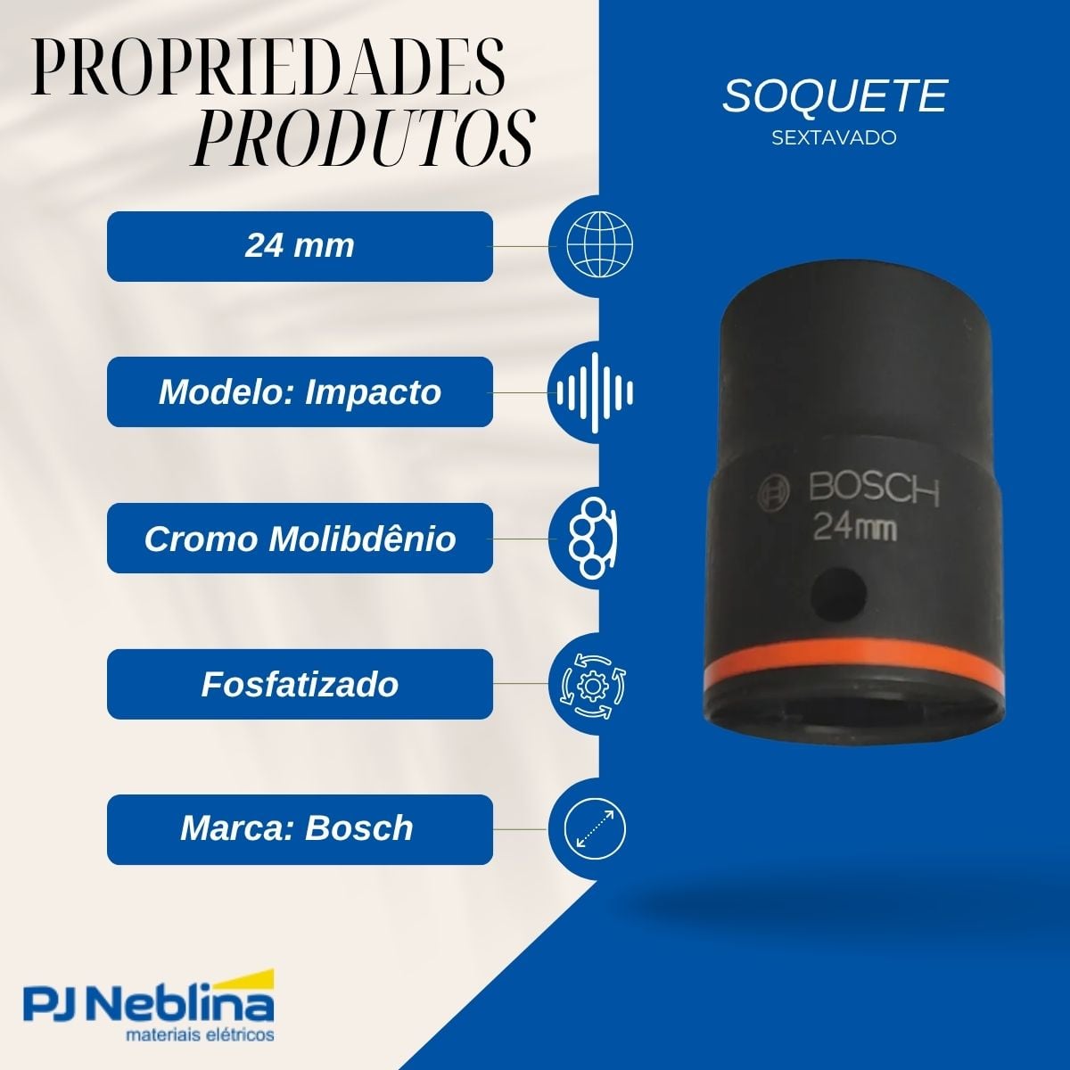 Soquete Sextavado Impacto 24 mm Enc 3/4 - Bosch - Código Fabricante: 1608556015-000