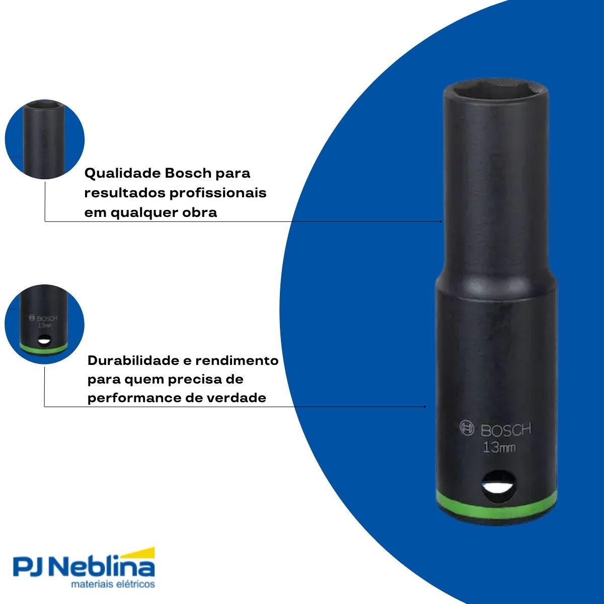 Soquete Sextavado Impacto Longo 13 mm Enc 1/2 - Bosch - Código Fabricante: 2608522304-000