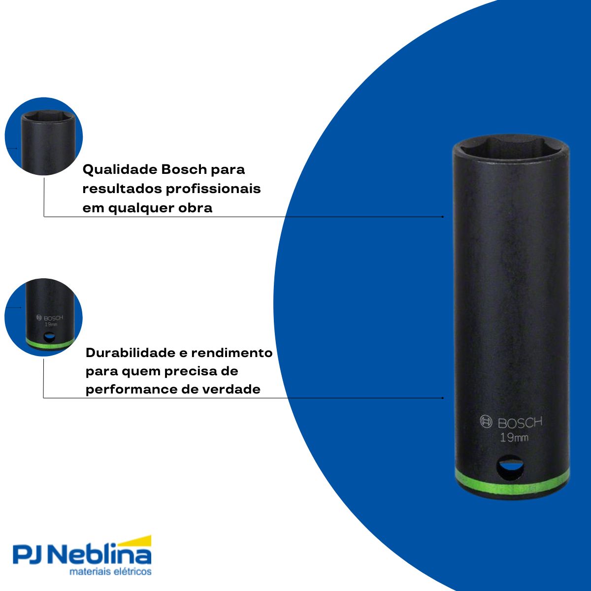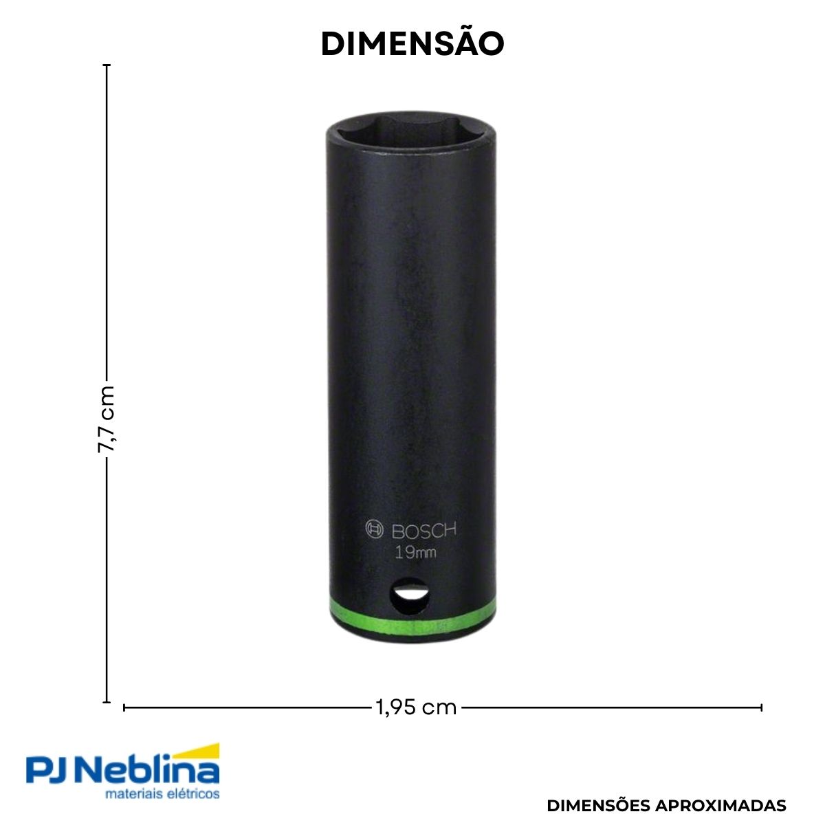 Soquete Sextavado Impacto Longo 19 mm Enc 1/2 - Bosch - Código Fabricante: 2608522306-000