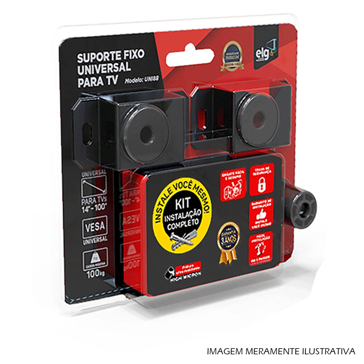Suporte Fixo Universal 14 a 100Pol Aço/Nylon 170x130x30mm Lcd/Led/Plasma/3D Preto UNI88 Elg